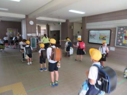 先ずは、毎朝のご家庭での検温、マスクの着用、登校したときに玄関ホールでの手の消毒と自分の体温をしっかりと伝え、教室で健康観察表を提出することができるようにしましょう。