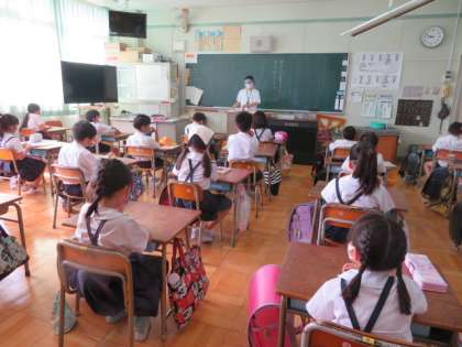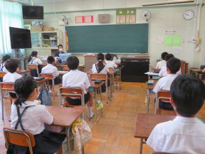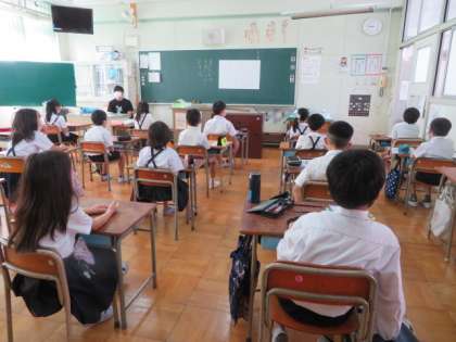 子どもたちは、校長の話を各教室でしっかりと聴きとっていました。