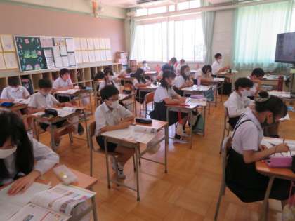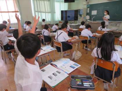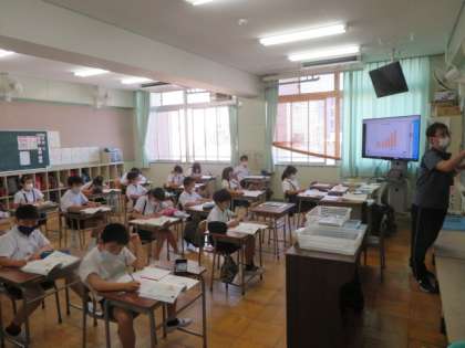 大型モニターを活用するなど、新たな形も織り交ぜながら静かな中にも活気のある授業を展開しています。