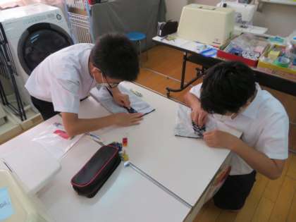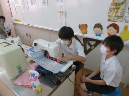 家庭科では、複数の教員が子どもたちの個別指導をしていました。