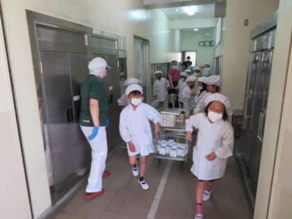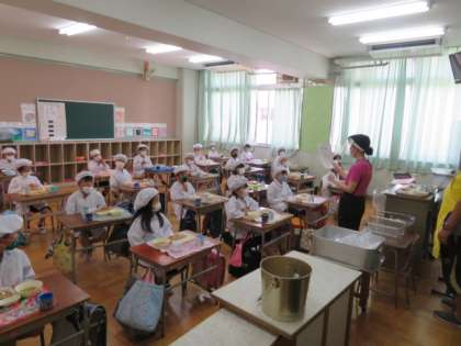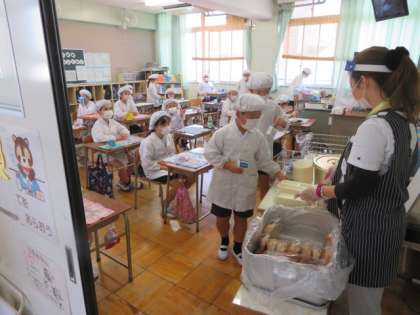 給食の時間も、新型コロナウイルス感染防止のための新たなルールを守って行っています。