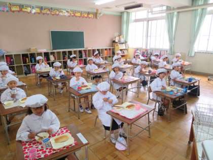 とても落ち着いており、給食をしっかりといただいていました。