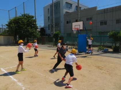 手洗い・うがいの励行、密着しないということで、子どもたちは、考えながらボール運動を楽しんでいました。
