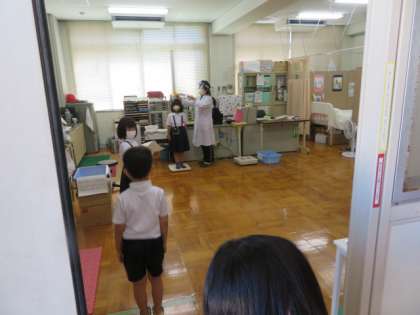 1年生も、ソーシャルディスタンスを意識し、新型コロナウイルス感染予防に配慮した形で身長と体重の測定をしました。
