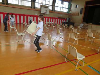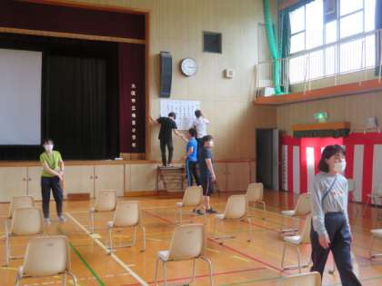 放課後の時間に教職員が分担をして、入学式の式場を整えました。