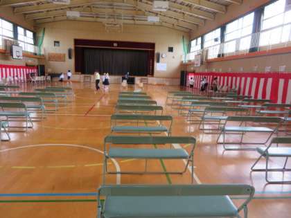 少人数でしたがよく協力して、あっという間に元通りの講堂になりました。