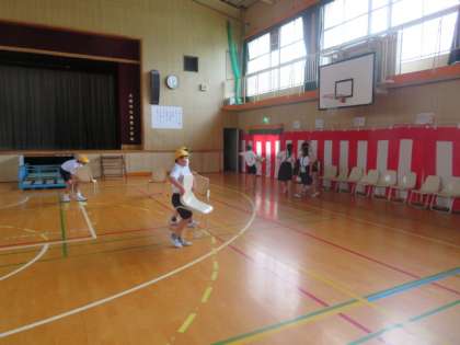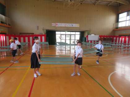 清掃の時間に講堂掃除担当の5年生が入学式の後片付けを手伝ってくれました。