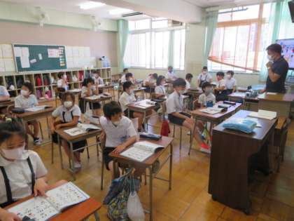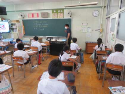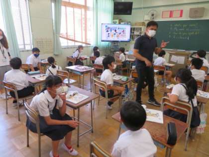 5年生では、英語の学習をC-NETの先生も入って活気ある授業を展開していました。