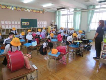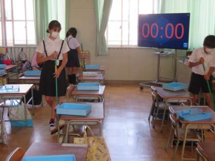 6年生は、1年生の教室の掃除を手伝いにきていました。