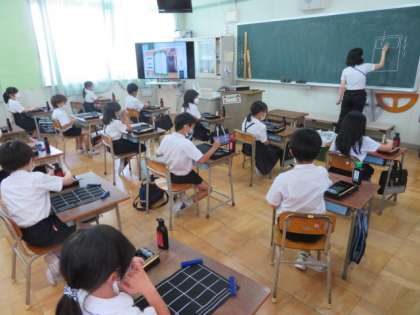 3年生にとって、小学校生活で初めての習字の時間でした。