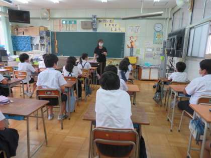 5・6年各学級で6つの委員会活動「健康委員会」「図書委員会」「集会委員会」「給食委員会」「放送委員会」「運動委員会」のどの委員会に所属するかを決めていました。