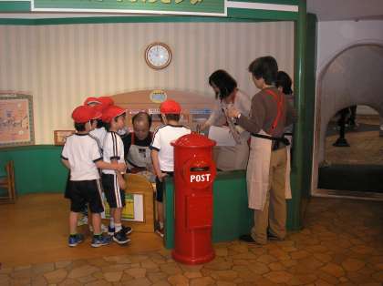 キッズプラザの中では、3〜4人のグループで楽しくすごしました。郵便屋さん・お店屋さん・テレビ局体験をしたり大きなシャボン玉を作ったり、ロッククライミングをしたり、体をいっぱいつかって遊びました。お弁当は、扇町公園で食べました。午後も大きなすべり台でみんな仲良く遊び、汗をいっぱいかいた1日でした。
