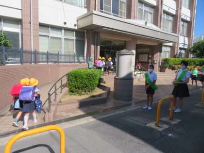 今朝も、担当児童が玄関に立ち、登校してくる児童にあいさつの声をかけていました。