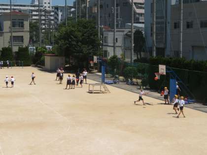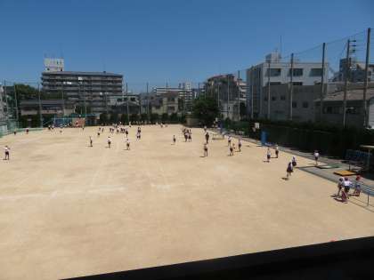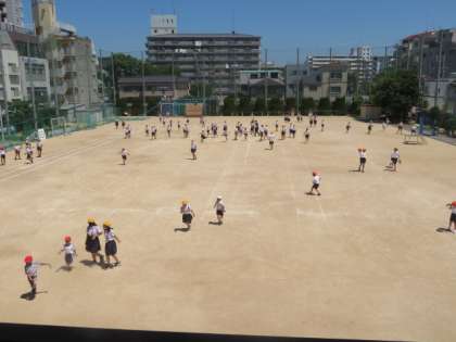 少し暑さも感じる中、子どもたちは運動場へ出て思い思いに遊んでいます。