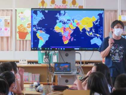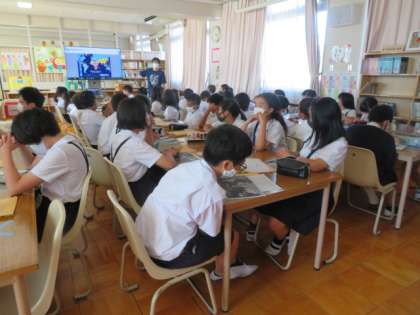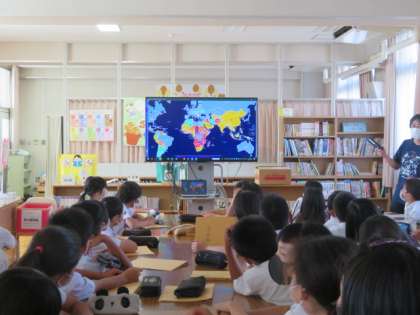 6年生は、総合の時間を使って、世界に目を向ける授業をしました。
