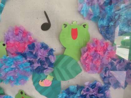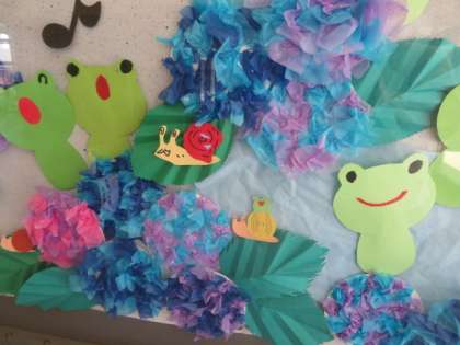 梅雨の時期にあった素敵な掲示です。