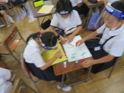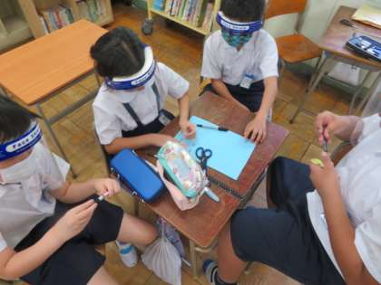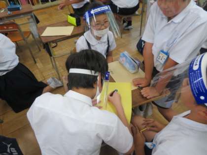 学級での各係活動の目標などを話し合い、メンバーなども書き込んだ掲示物を作っていました。