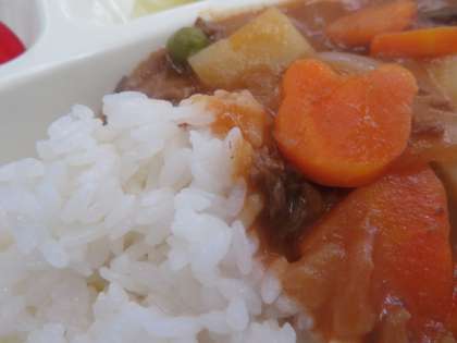 ハヤシライスは、待ちに待った人気メニューの一つです。甘酸っぱい手作りのルウで、とてもおいしくいただきました。