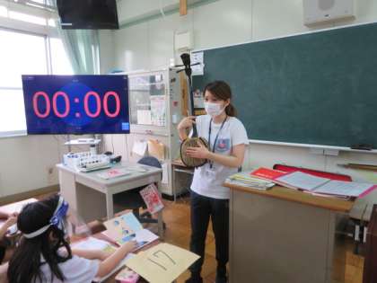 その後、世界の国の民謡ということで、外国の民謡を紹介したり、日本の民謡について子どもたちにどんな民謡があるかきいたりしていました。