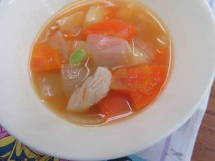 フレッシュトマトのスープ煮は、トマトのさわやかな酸味がきいており、とてもおいしくいただきました。