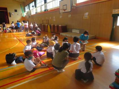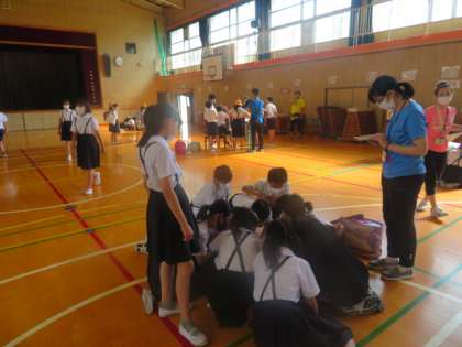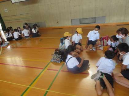 来週、7月1日(水)からの集団登校開始に向けて、集団登校班の高学年児童が講堂に集まり、担当の先生の指導のもと、班長・副班長の選出、登校路、集合場所、集合時刻等についての確認や話し合いを行いました。