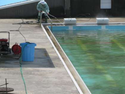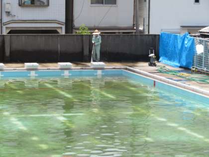 7月6日(月)のプール開きに間に合うように、これからプール内清掃、周辺清掃を行っていきます。