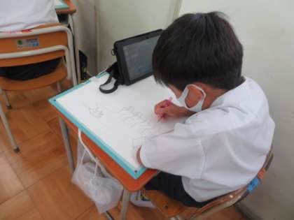 タブレット端末に映る写真を観ながら下絵を丁寧に描いていました。