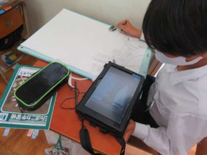屋上から見える景色をタブレット端末で写真撮影をしました。