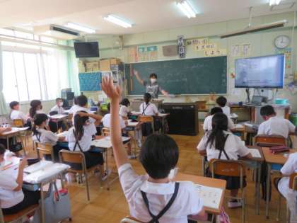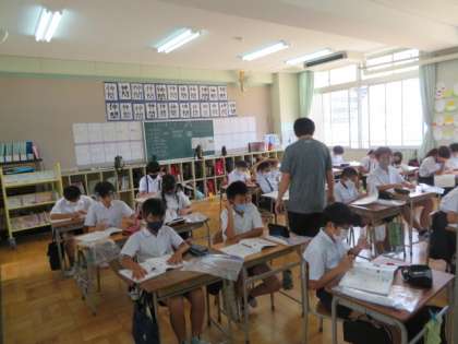 好きなスポーツや国について聴きとり、表にまとめていました。