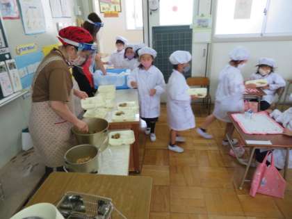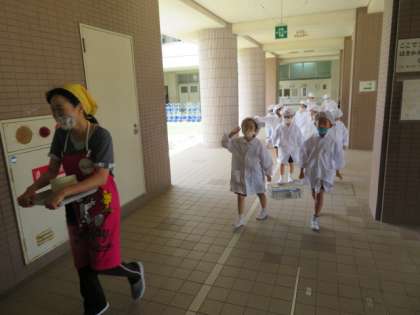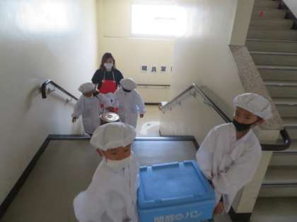 足元や食缶に気をつけて慎重に運ぶことができました。