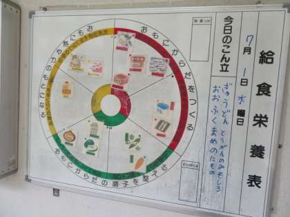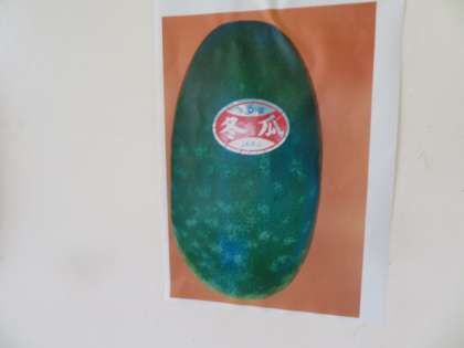 今日の献立に冬瓜のみそ汁があるので、冬瓜の写真が掲示されていました。