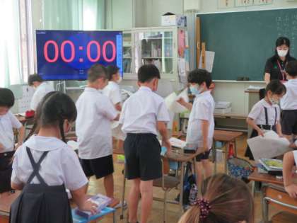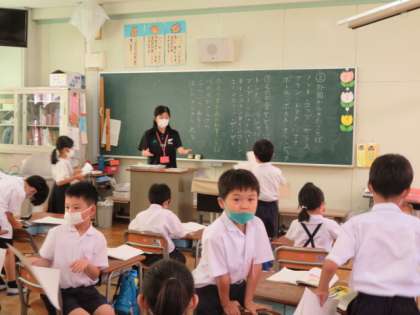 「外国からきたことば」「ものの音やどうぶつのなきごえ」「ようすをあらわすことば」に区分けして、カタカナやひらがなを使い分けて表記する等ことばの学習をしていました。