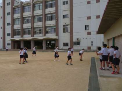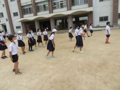 休み時間に5年1組が運動場でみんな遊びをしていました。