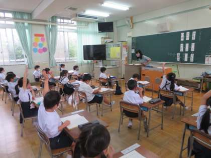 1年1組は、国語で「ことばあそび」の学習をしていました。