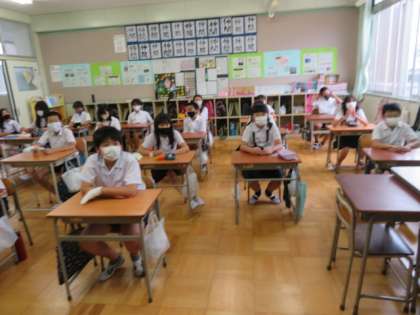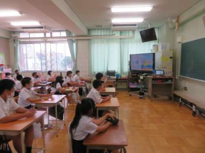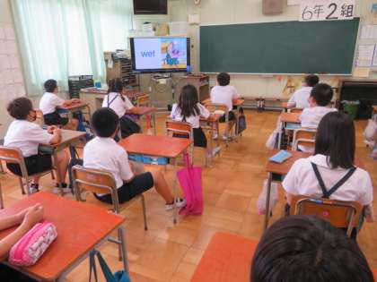 6年2組では、発音を確かめ声を出しながら活動をしていました。