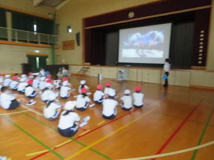 初めにドミニクさんの経歴等の簡単な紹介とDVD映像でヒップホップダンスの様子を紹介していただきました。