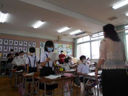 4年2組学級で大阪市教育センター学力向上推進指導員の先生に来ていただき、国語科の研修として国語の示範授業をしていただきました。