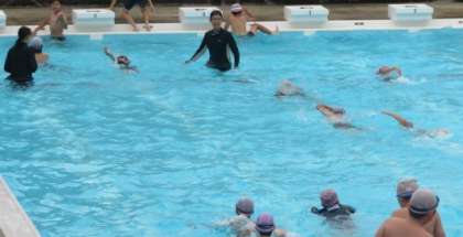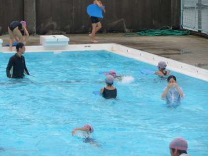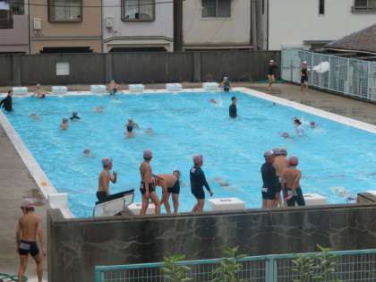 5年生は、プールの縦25m方向でどんどん泳いでいました。