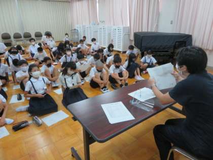 今年は少し縮小した形で行う8月4日に開催予定の「ミニ柏小まつり」に向けて、第1回目のたてわり班リーダー会が多目的室で行われました。