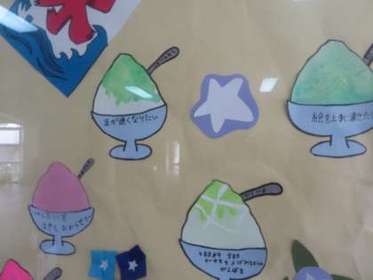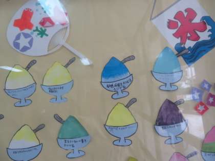 一人ひとりの子どもたちの願いも書き込まれた色とりどりのかき氷です。
