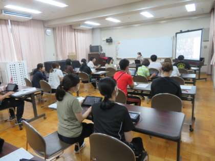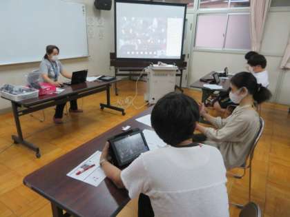 今後、新型コロナウイルスの感染拡大等で学校が臨時休業になった場合に、「Teams」を用いて学校と家庭との双方向通信で授業を進めていくことができるように校内で機器の使い方、ソフトの扱い方・注意等について実技研修をしました。