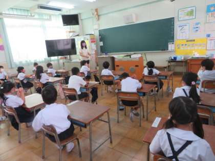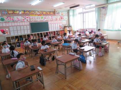 講堂に集まることが難しいので、教室で各学級ごとに放送をよく聴いて、クイズに答えていました。