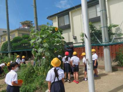 3年生が交互にひまわりとホウセンカの観察をしました。