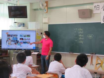 2組では、今日は火曜日なのでC-NETの先生も入って英語の学習をしていました。