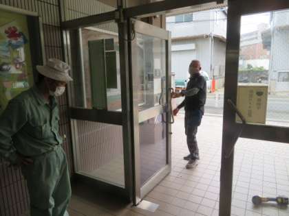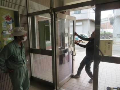 先日来、玄関の電気錠に不具合が発生していましたが、今朝の工事で無事に修復いたしました。