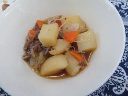 肉じゃがのじゃがいもはふっくらと柔らかく煮込まれており、とてもおいしくいただきました。低学年の子どもの小さな口でも食べやすい大きさにカットされていました。