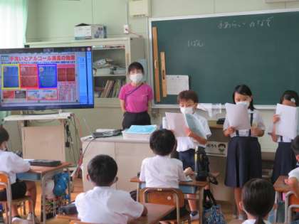 総合的な学習の時間に、「手あらいのなぞ」というテーマで、発表会が行われました。
