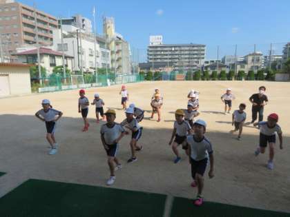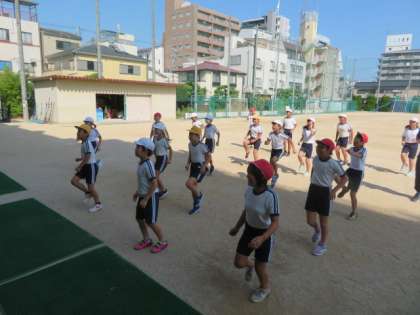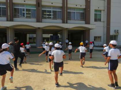 1学期から取り組んできた「足が速くなるダンス」と「ラジオ体操第一」の練習をしていました。