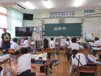 自分の好きな形を組み合わせて下書きをして、それを丁寧に水彩絵の具で色づけしていきました。ぬり方は1学期に習った技法を使って仕上げていきました。