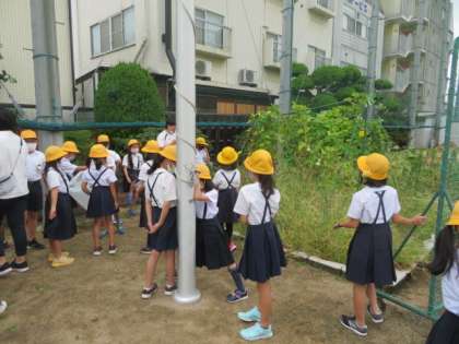 8/28 金 1時間目  4年生 学習園整美作業